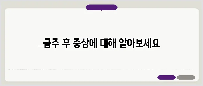 알코올을 자주 섭취하던 사람은 금주 후 자신이 예상하지 못한 변화들을 경험하게 됩니다. 금단 증상 치료는 필요한 경우 전문의와 상담하여 진행해야 하며, 특히 걱정되는 증상이 있다면 적극적으로 도움을 요청하는 것이 중요합니다.